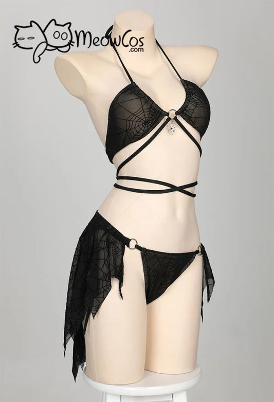Meowcos Women‘s Gothic Swimsuit Spider Web Design Dark Style Cosplay Costume