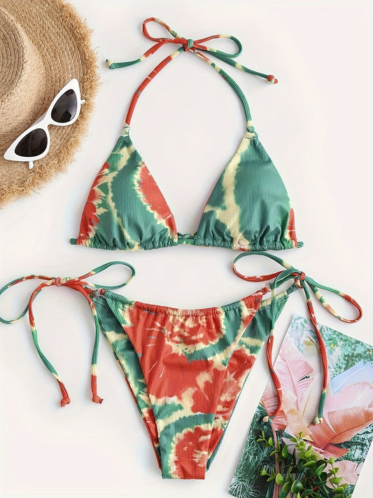 ZAFUL Women's Tie-Dye Striped 2 Piece Bikini Set, Adjustable Triangle Top, Tie-Side Bottoms, Swimwear, Beachwear, Summer Fashion, Poolside Apparel