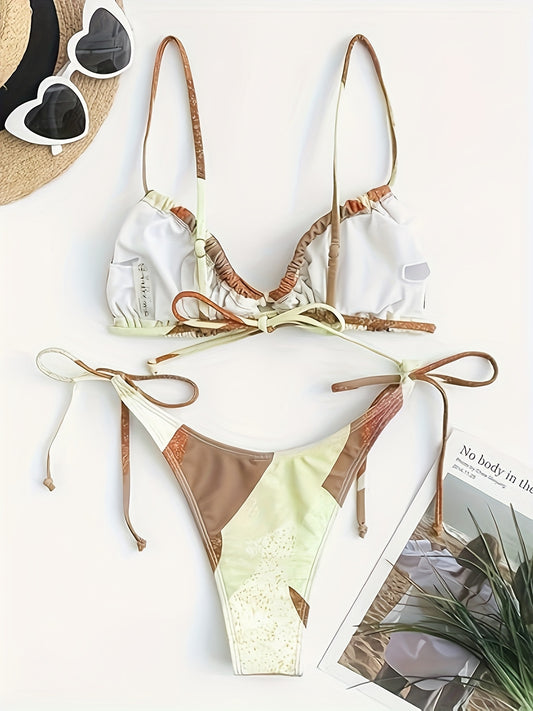 ZAFUL Women's High Cut Bikini Set, Lace-up Sexy Swimsuit, Beachwear, Two-Piece Swimwear, Summer Fashion, Adjustable Straps