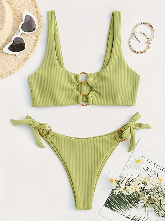 ZAFUL High Cut Ribbed Bikini Set For Women Cheeky Braided Swimsuits Sexy Cut Out Bathing Suit
