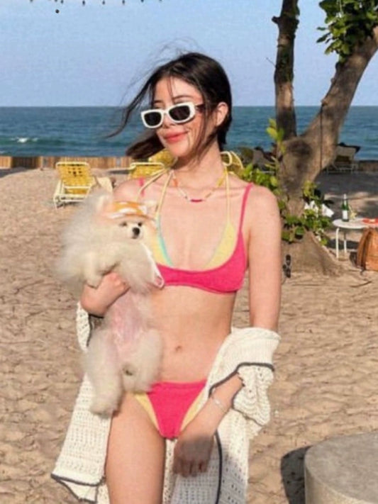 Swimsuit Women's Fancy Color Matching Sexy Sexy Four-Piece Triangle Bikini Three-Point Seaside Vacation