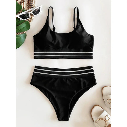 S -XL Splicing Retro Bikini Female Swimsuit Asymmetric Mid Waist