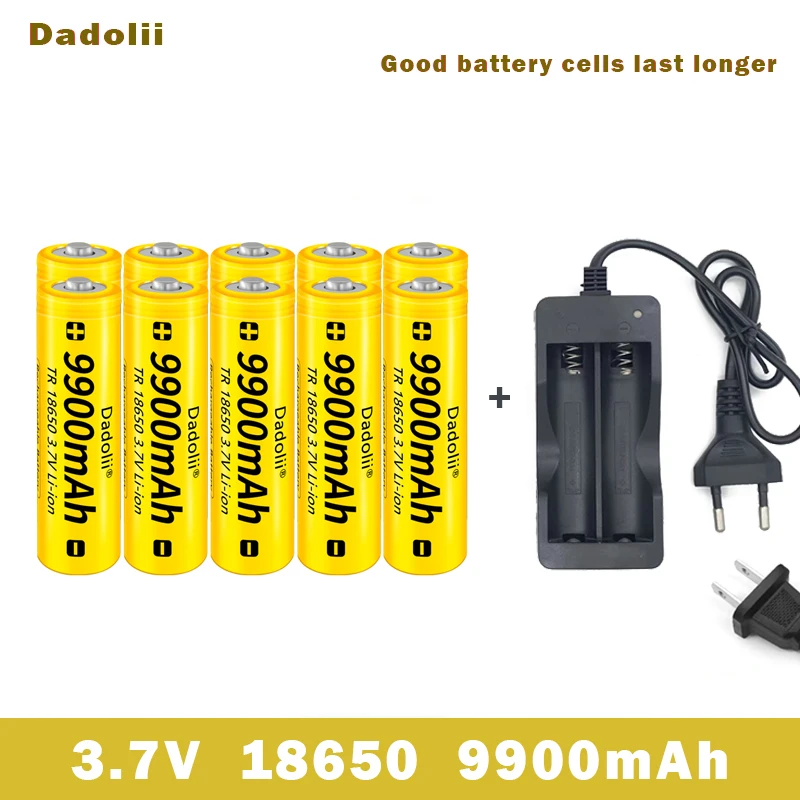 18650 Battery Rechargeable Battery 3.7V 18650 9900mAh Capacity Li-ion Rechargeable Battery For Flashlight Torch Battery+Charger
