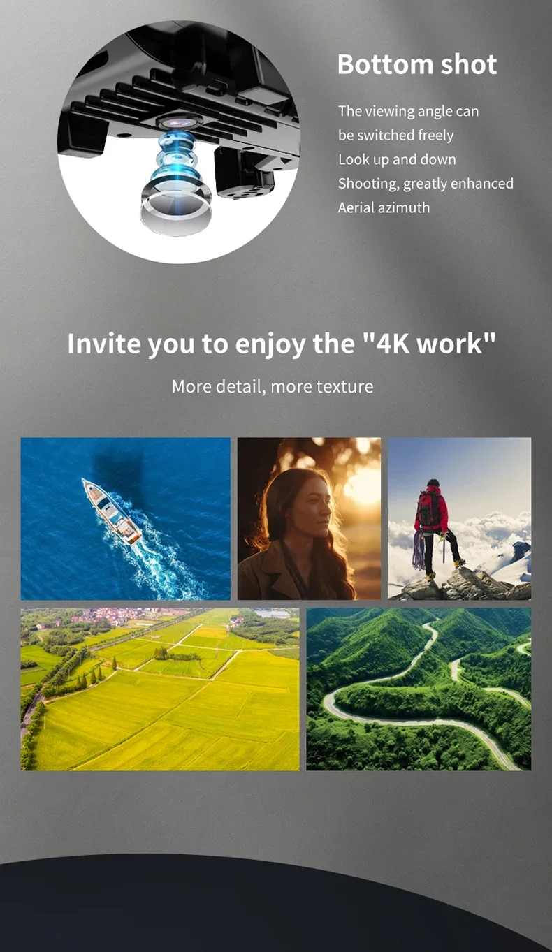 5: Built in 4K pixel high-definition camera with adjustable shooting angle, it can capture stunning pictures and videos from the sky.