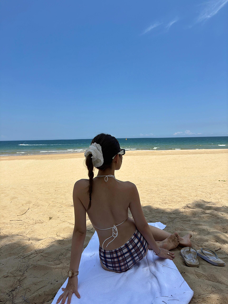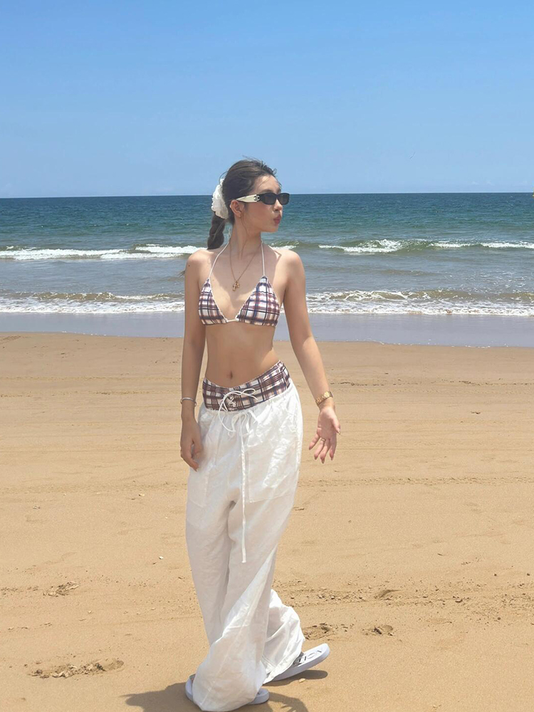 Hot Spring Niche Style Fancy Retro Plaid Bikini