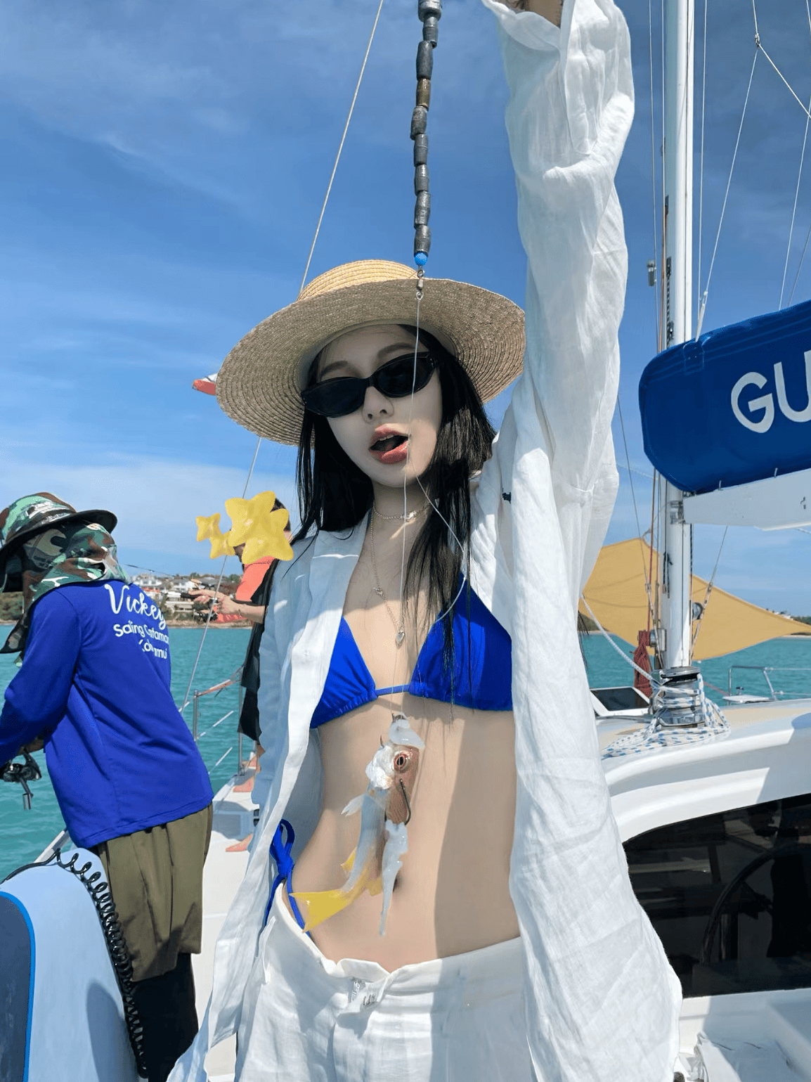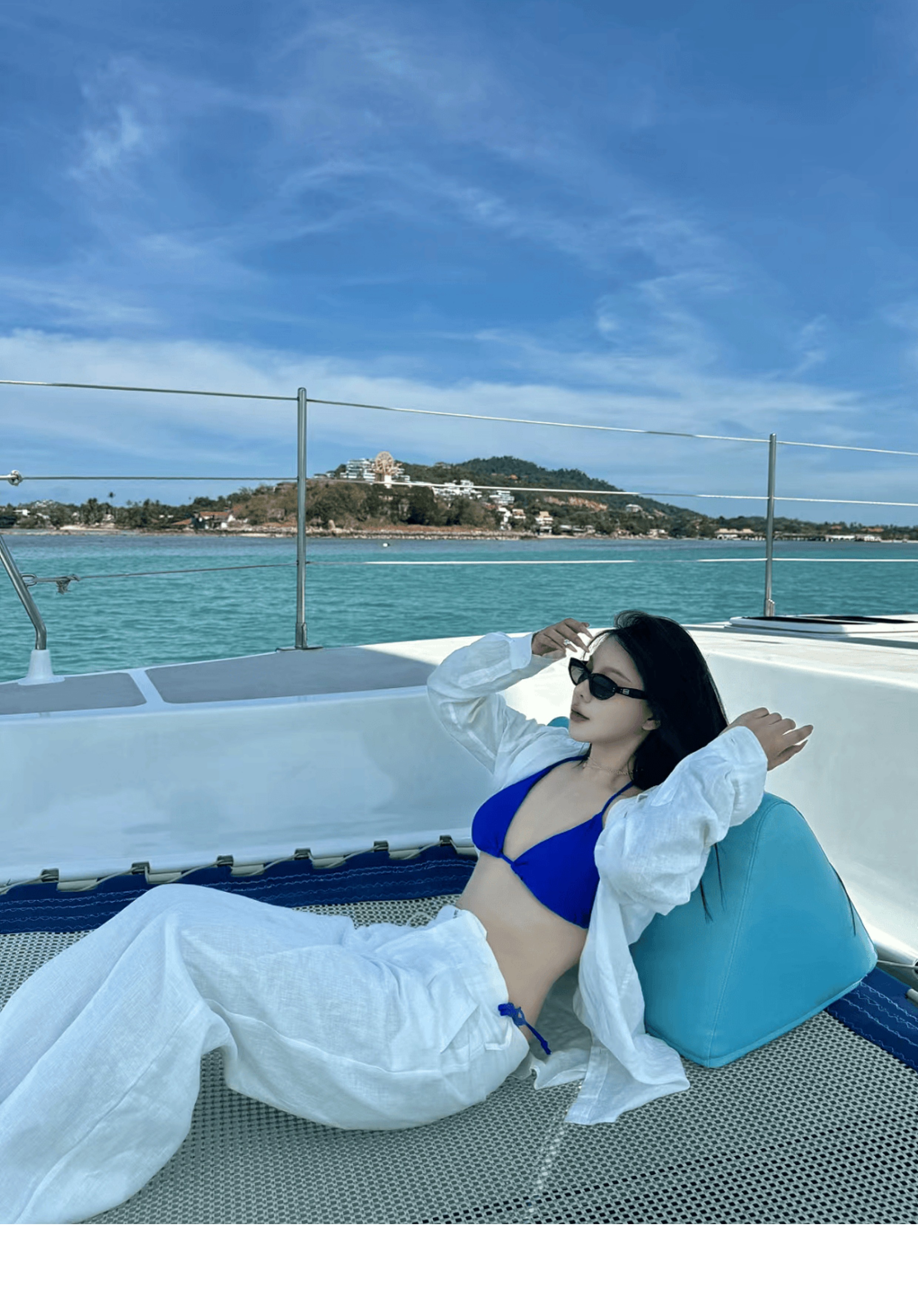 Klein Blue and White Anti-DDoS Seaside Banded Bikini