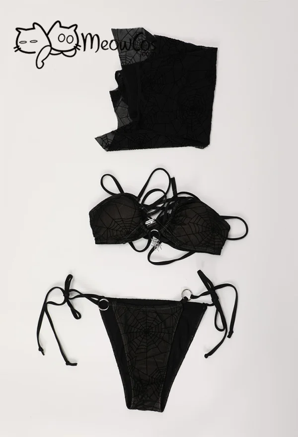 Meowcos Women‘s Gothic Swimsuit Spider Web Design Dark Style Cosplay Costume