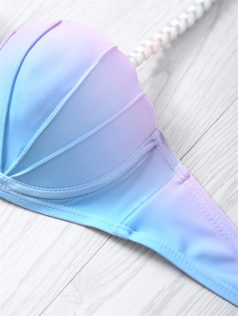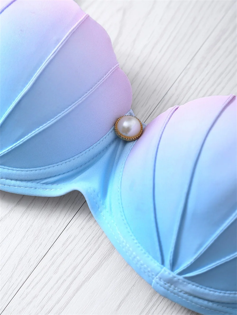 Pearls Shell Women Bikini Underwired Bra Push Up High Waist Swimwear