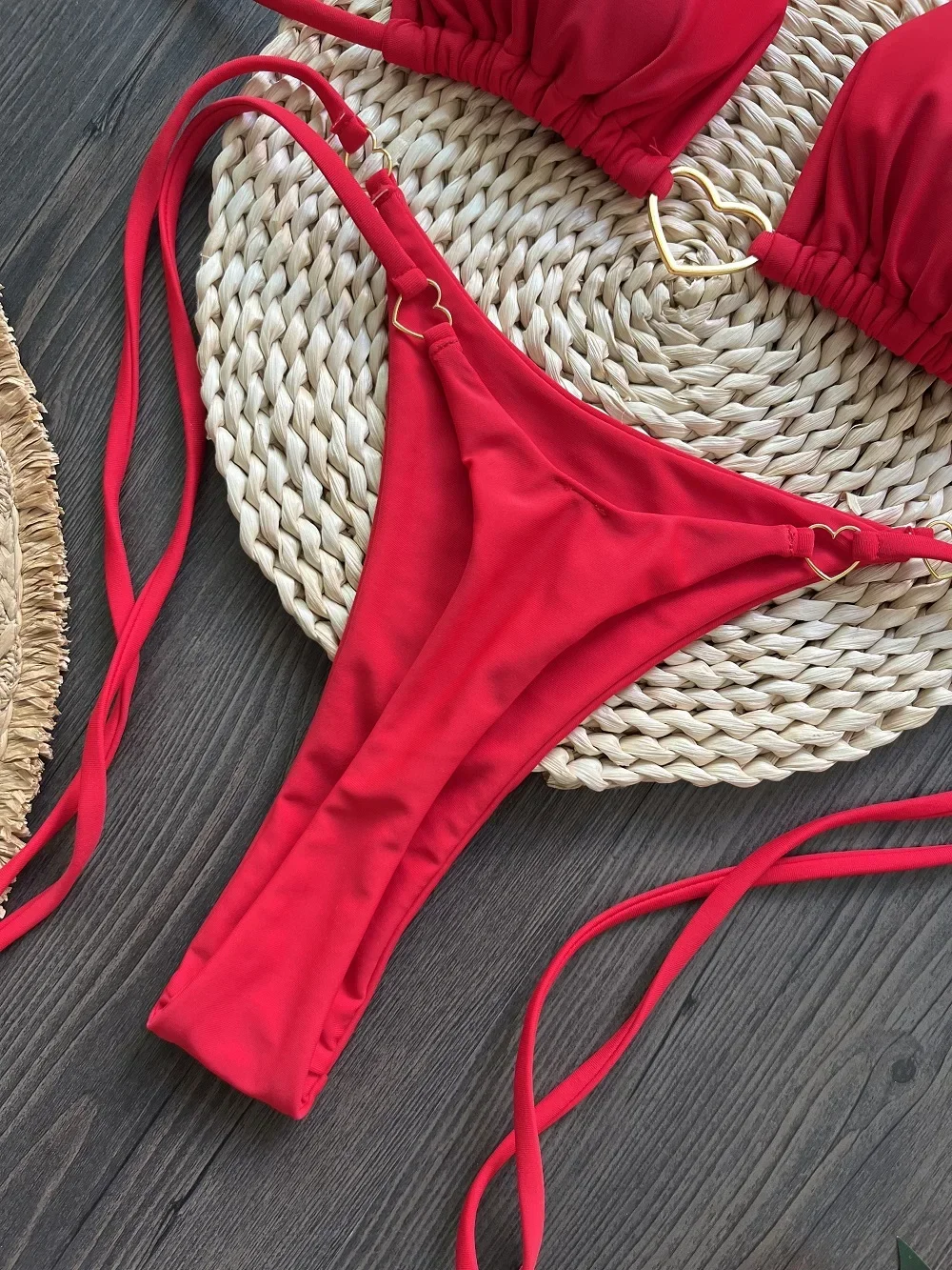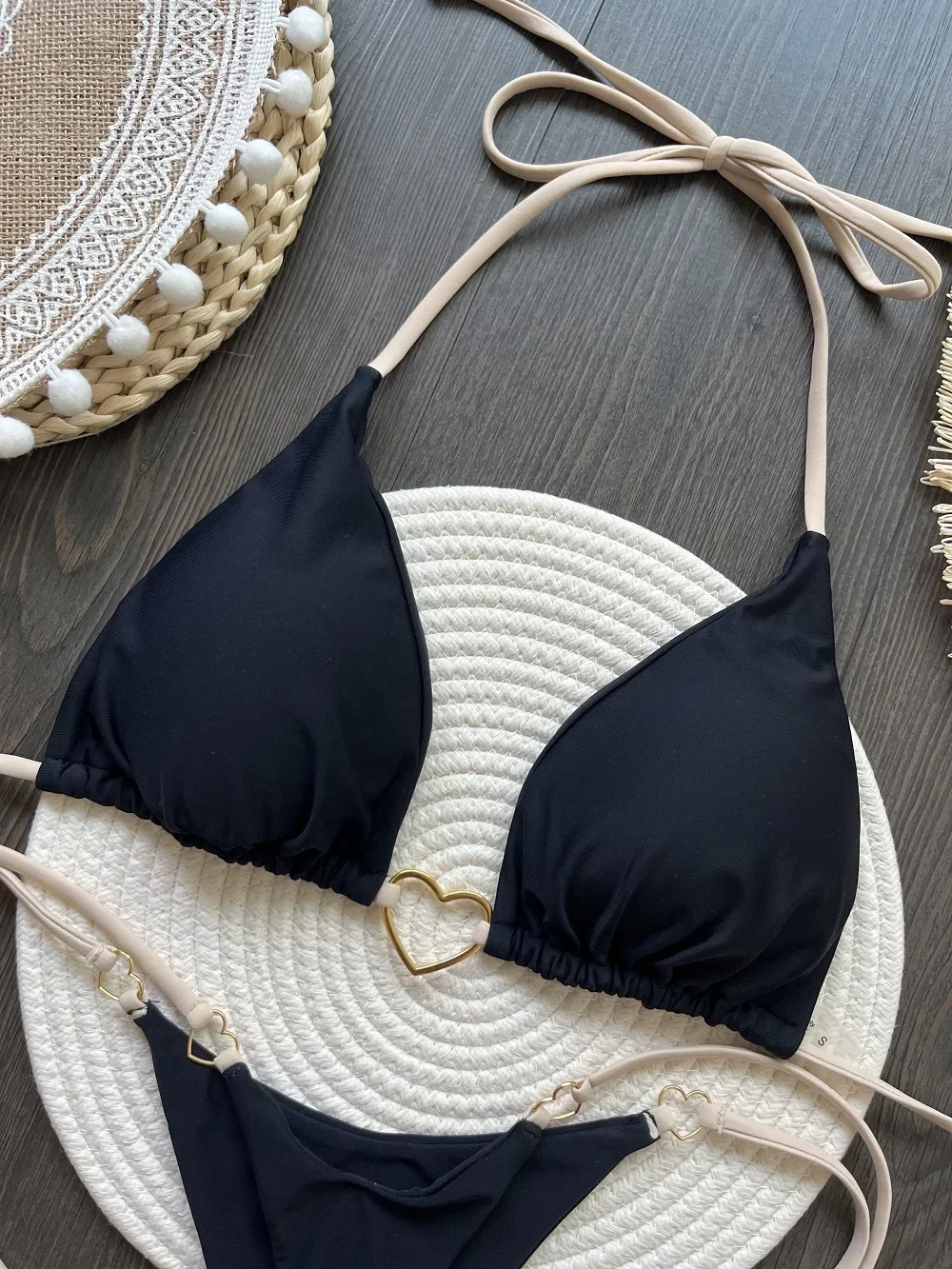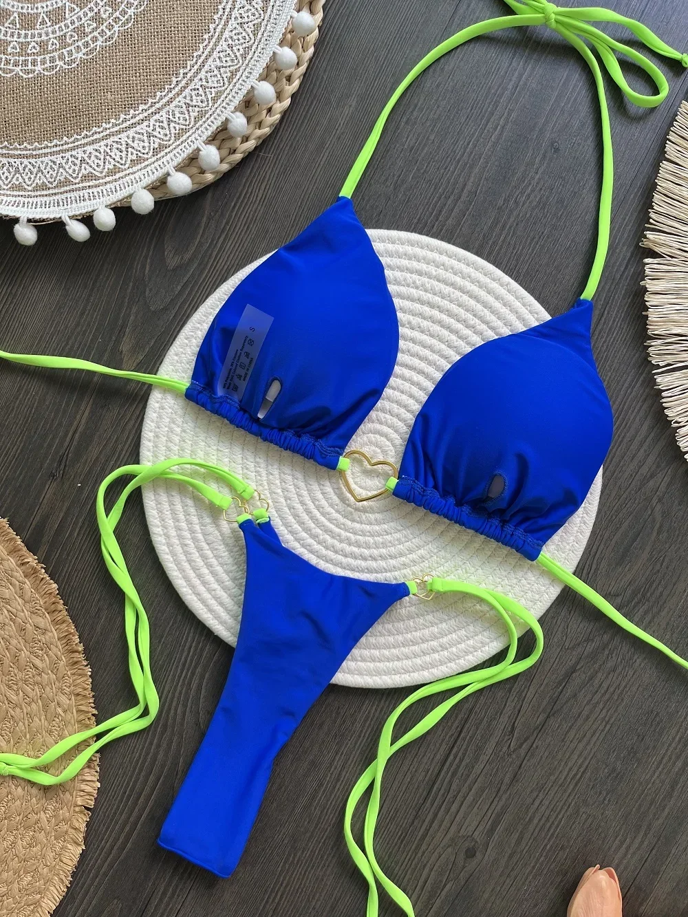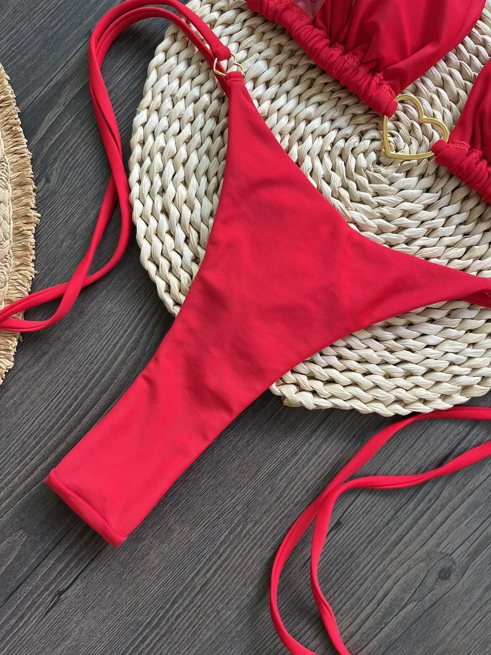 Sexy Halter Solid color Bikini Set Women's Swimsuit Two-piece Triangle Thong