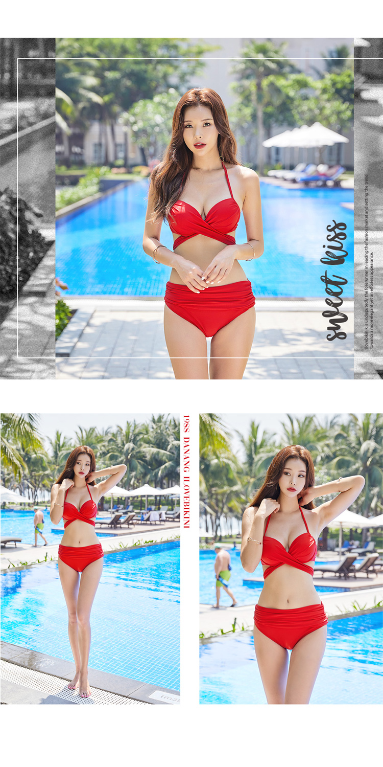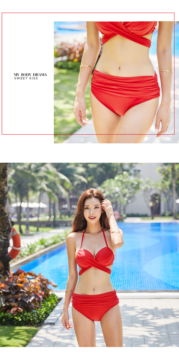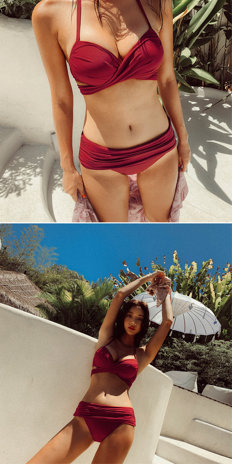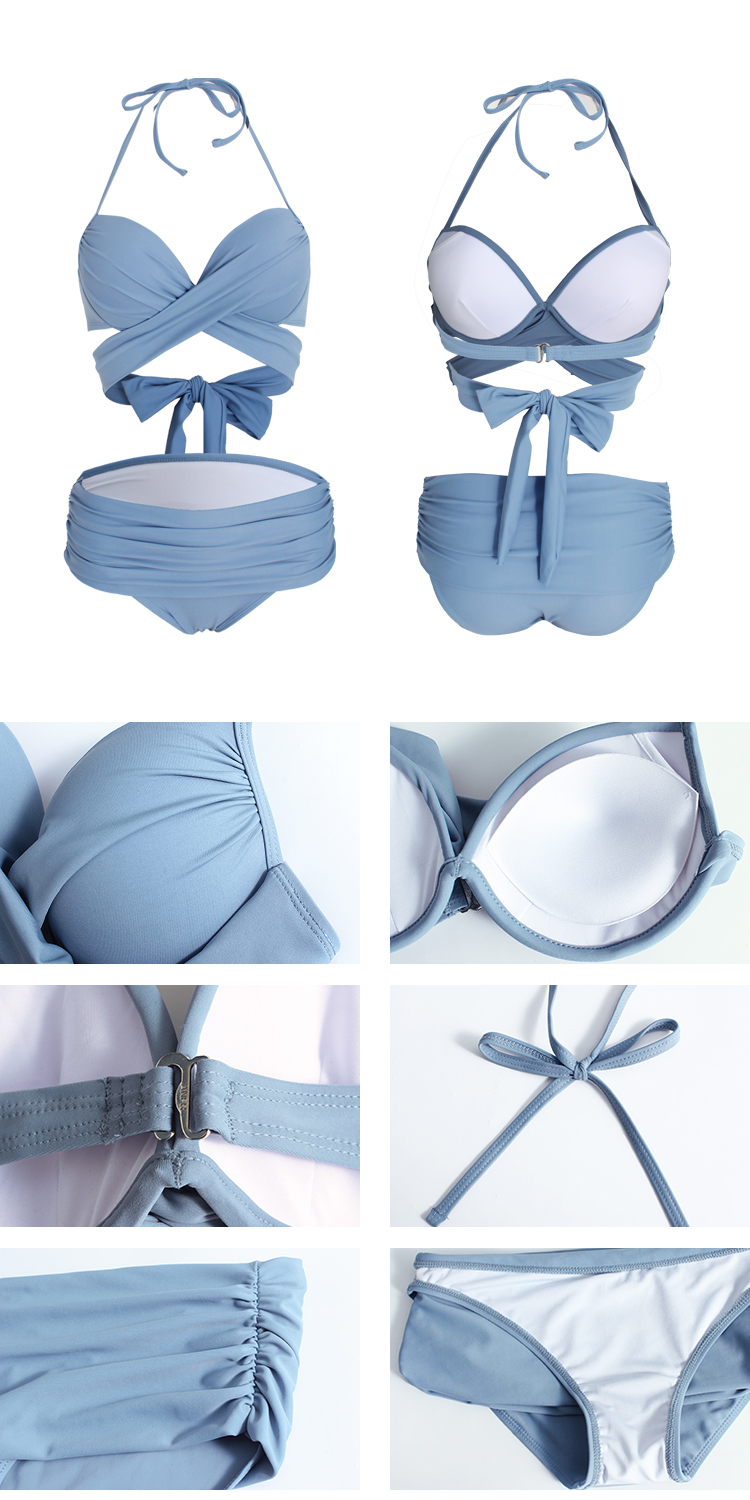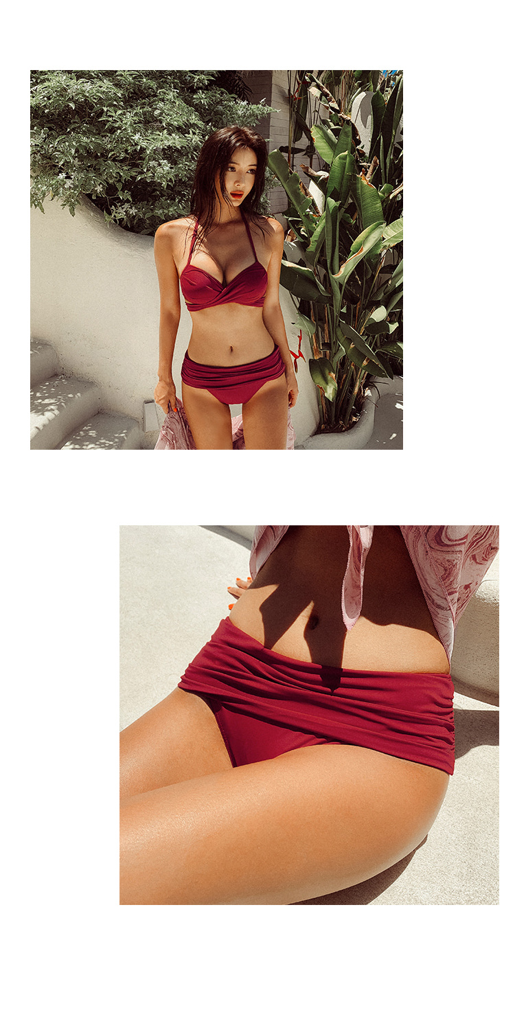 Swimsuit for Women Ins Sexy Lace-up Army Green Bikini High Waist Covering Belly Thin Steel Bracket Small Chest Push up
