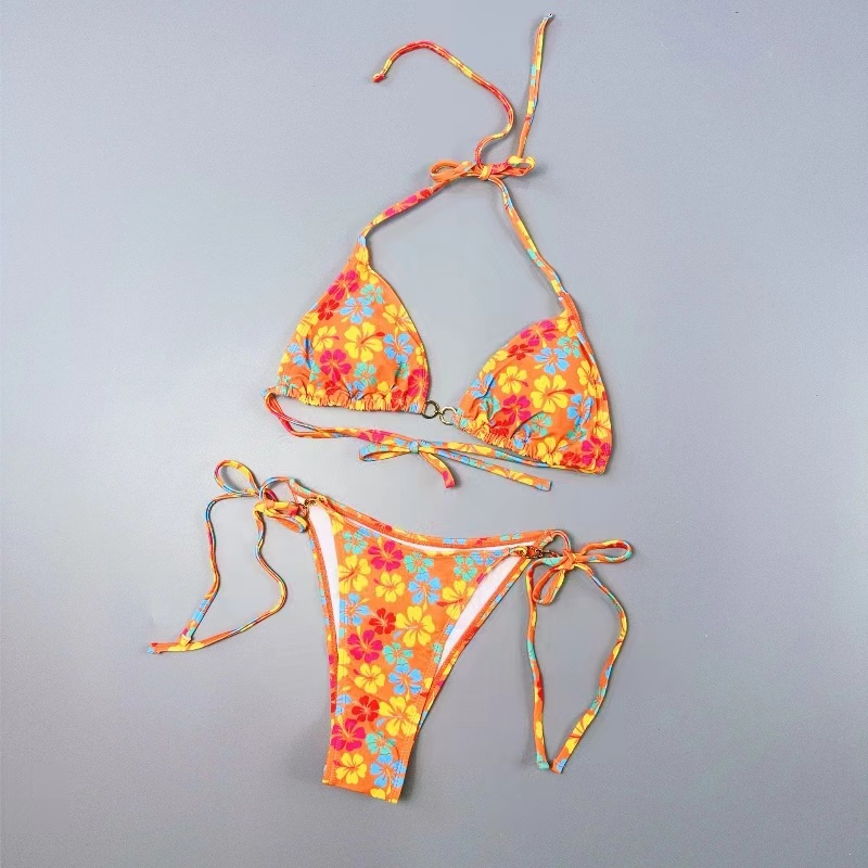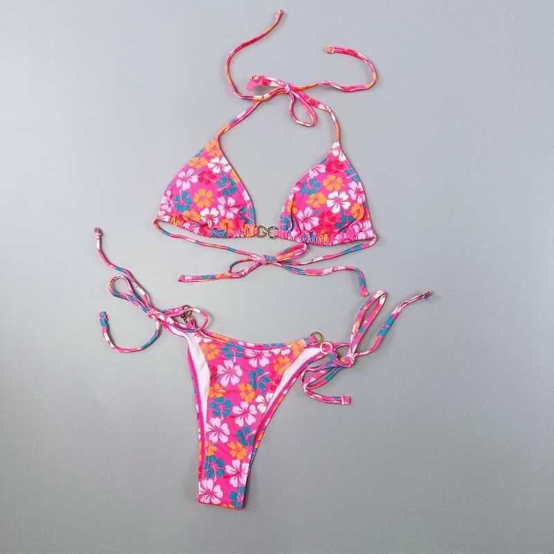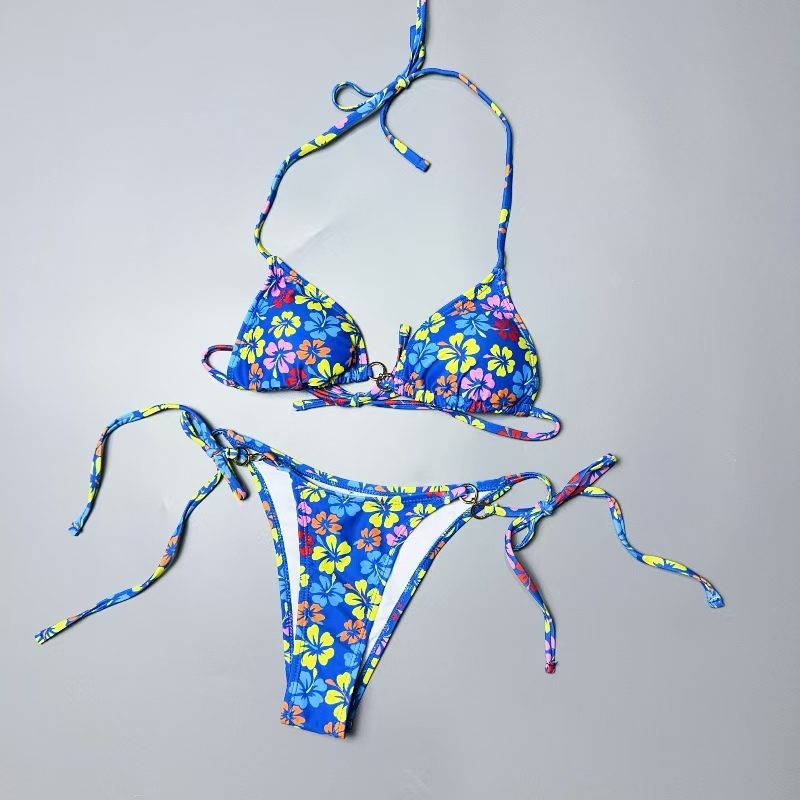 Triangle Cup Women's Swimwear Color Banded Bikini